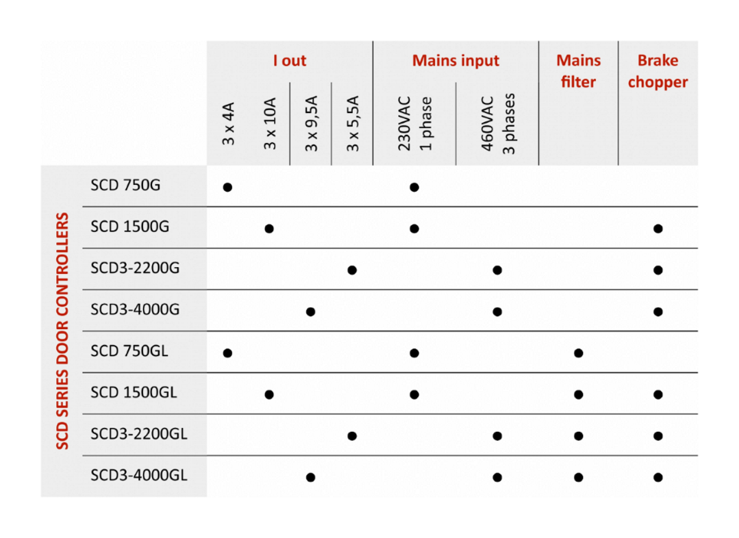 The SCD series provides a full-fletched, fully integrated, door control system which meets all safety standards relevant to industrial door control.